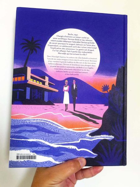 4ème de couverture de l'album de bandes dessinées Moonlight Express, scénario Thierry Smolderen, 2025, Seuil.