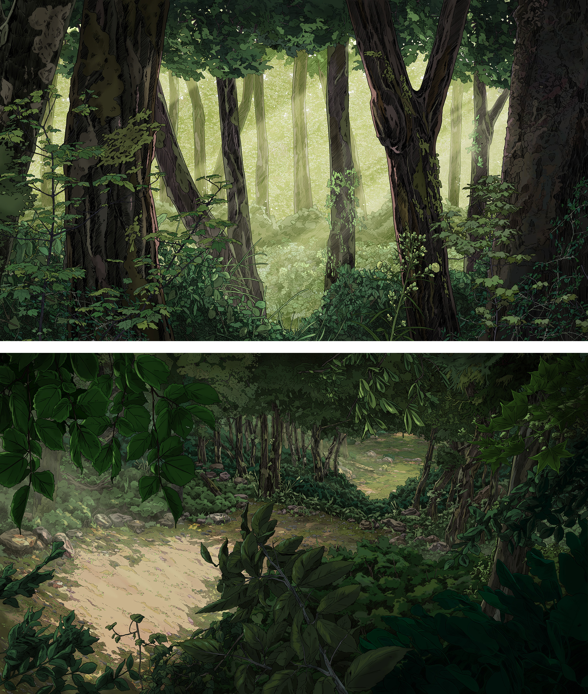 Il travaille aussi bien en numérique que sur papier, notamment à l’aquarelle ou aux pastels, en fonction des projets ou des ambiances recherchées. Chaque image capture un instant suspendu, une atmosphère paisible, souvent baignée de lumière naturelle.
